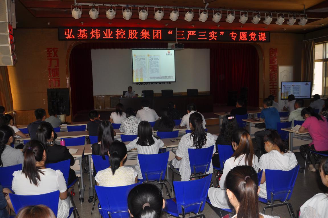 全面推进“三严三实”,坚决杜绝“不严不实”。2015年8月26日,弘基炜业控股集团党总支组织开展“三严三实”专题党课活动,党总支书记李军主持讲座,党员、入党积极分子、集团公司全体员工、各子公司负责人参加学习。